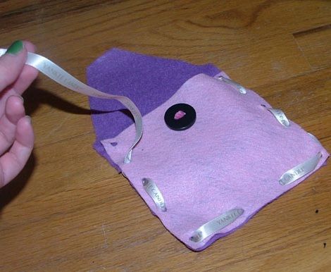 bolsos fieltro boton Introduce el botón y átalo con un lazo, un trocito de lana u otro material.